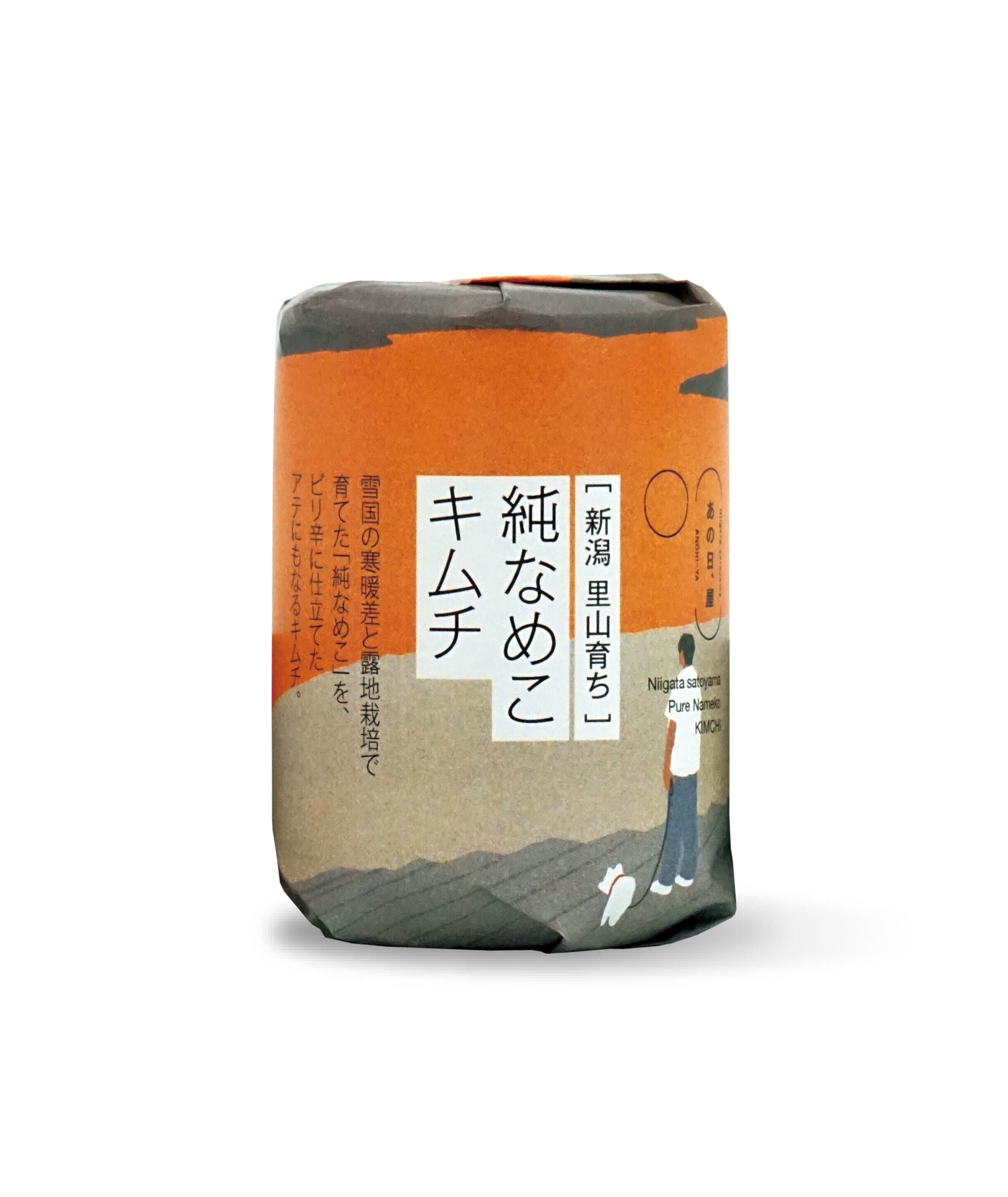 「純なめこ」をピリ辛に仕立てた、アテにもなるキムチ。